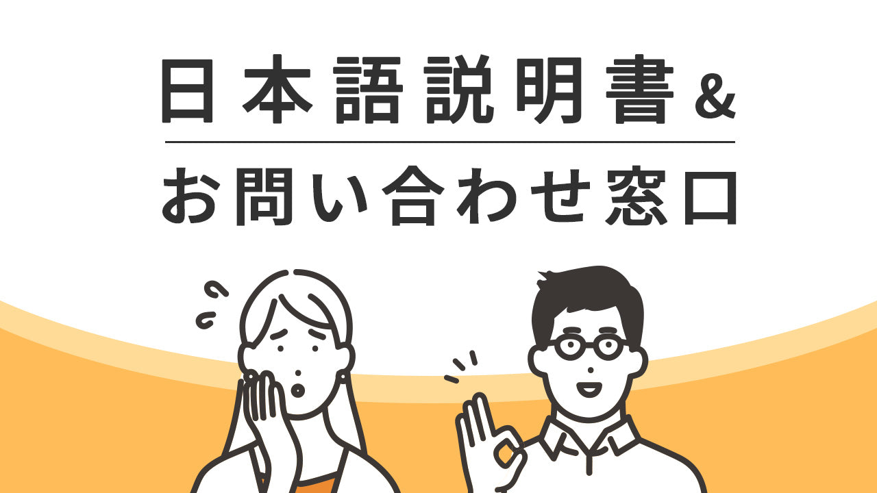冊子またはPDFの日本語説明書が商品に付属しています。操作に困ったときは、フォームよりお気軽にお問い合わせください。2営業日以内に返信いたします。